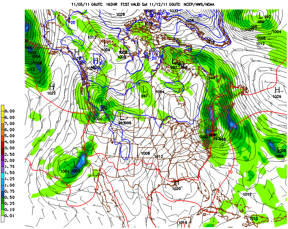The activity will also produce some much needed rain across portions of the middle third of the nation. The GFS models total rainfall accumulation forecast is shown below, which indicates widespread 1 inch or greater rainfall within the blue and red shaded areas on the image: